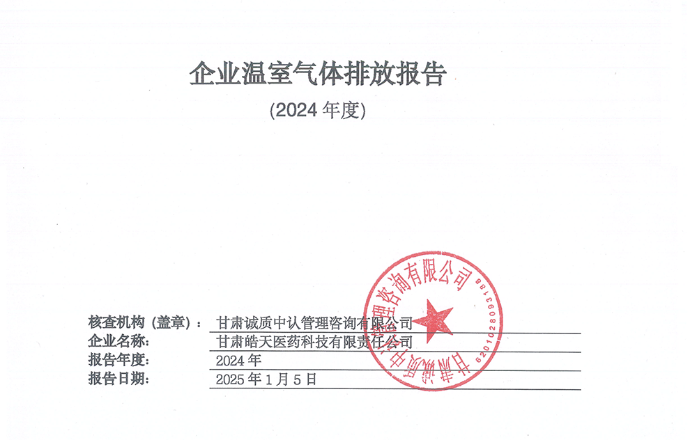 碳足跡核查報(bào)告--甘肅皓天醫(yī)藥科技有限責(zé)任公司